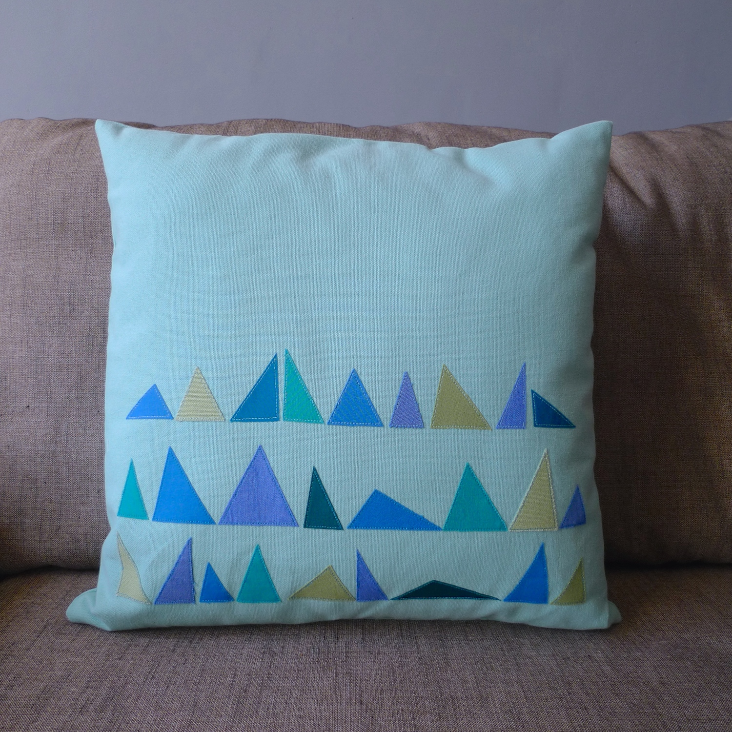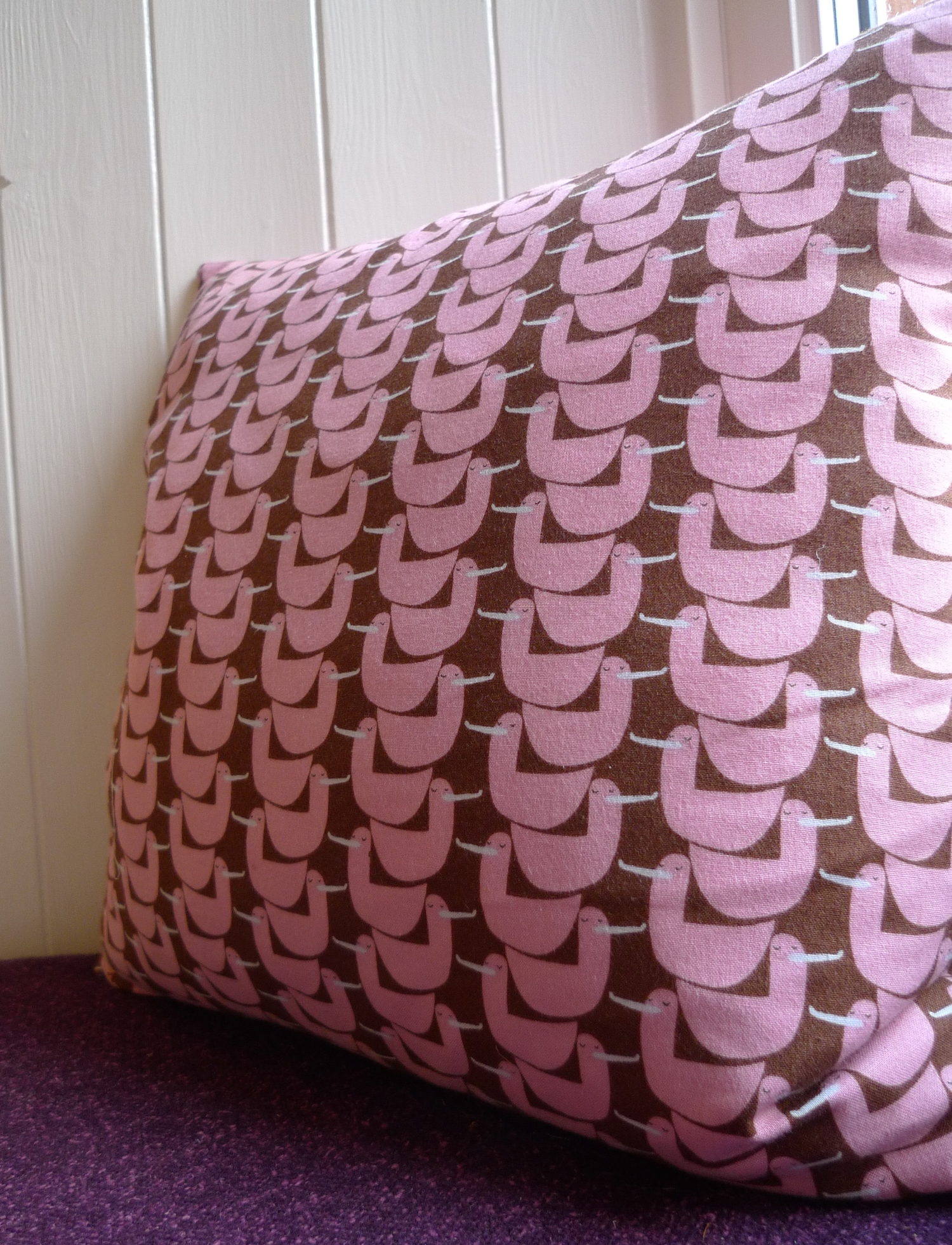 I’m especially pleased with my appliqué cushion; I love triangles and I love shades of blue and green, so this is combo is making me happy! And the duck cushion is very much at home on the aubergine window seat in my kitchen. My intention was to give the triangle cushion to someone for Christmas…..but I’m struggling with the thought of giving it away! I might have to make another.
